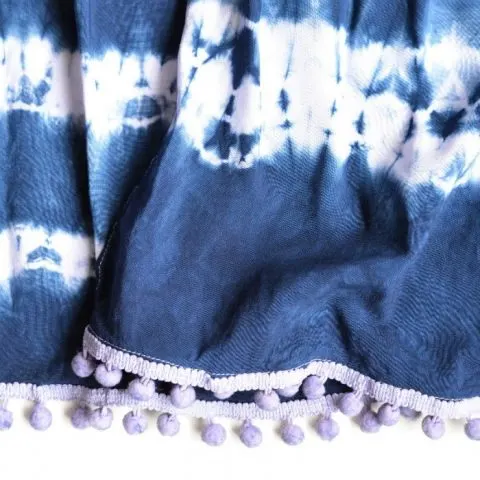 Have fun with an indigo dye kit and pompoms to make a stylish a scarf.