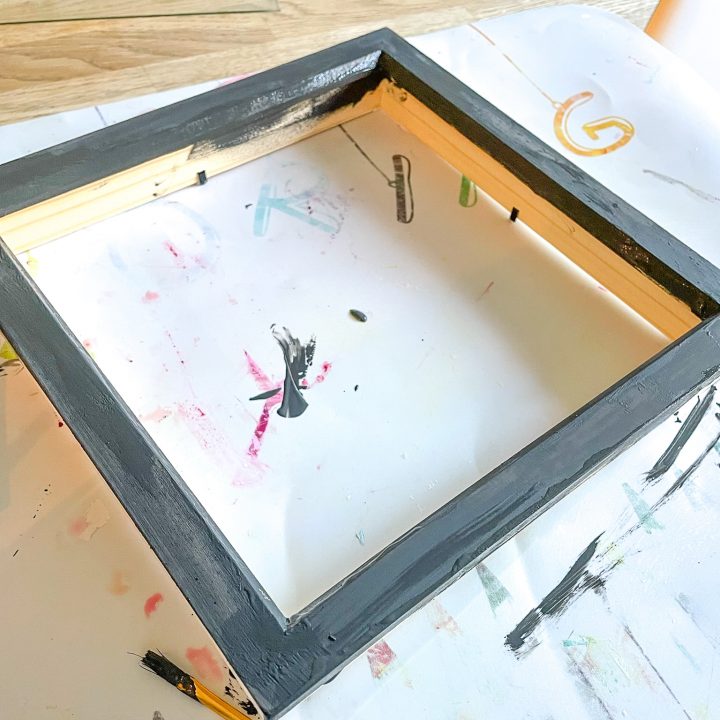 Step 1– Paint the base of the frame with a pale blue acrylic paint, you may need to apply two coats to get a lovely even finish.