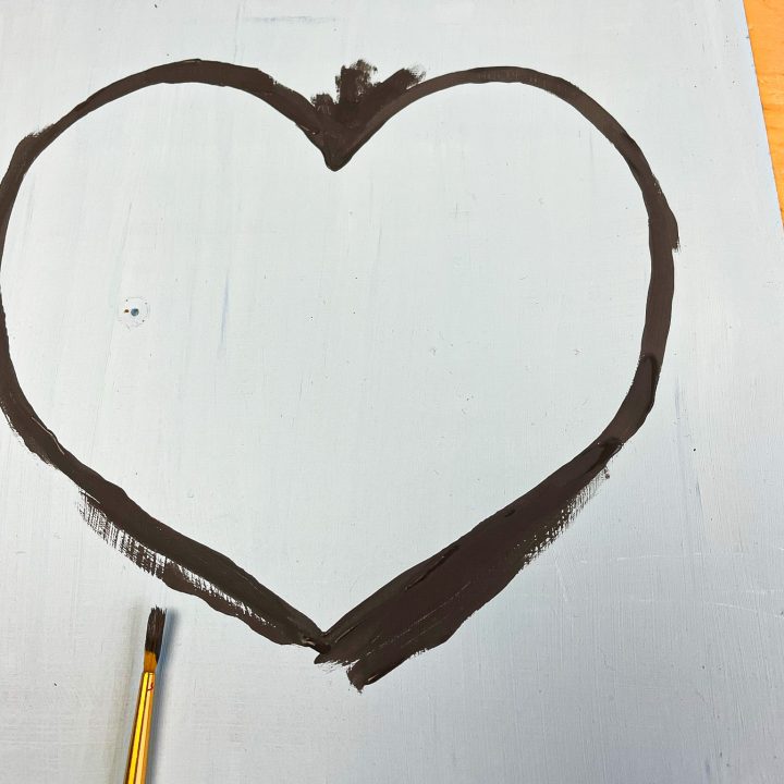Step 3 – Once you are satisfied with the heart shape paint the frame and the background with chalk paint. I chose to work with chalk paint as you do not need to prime the wooden frame. I am using the graphite from Rustoleum, a dark grey.
