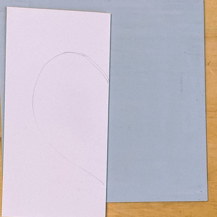 Step 2 – Once this is fully dry draw the outline of a heart onto the base. I chose to make a stencil, folding a piece of paper in half and cutting a heart shape in order to obtain even sides.