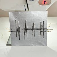 Place a 2″ (5cm) square of fusible fleece on the back. Place the metal washer in position and mark the rectangles.