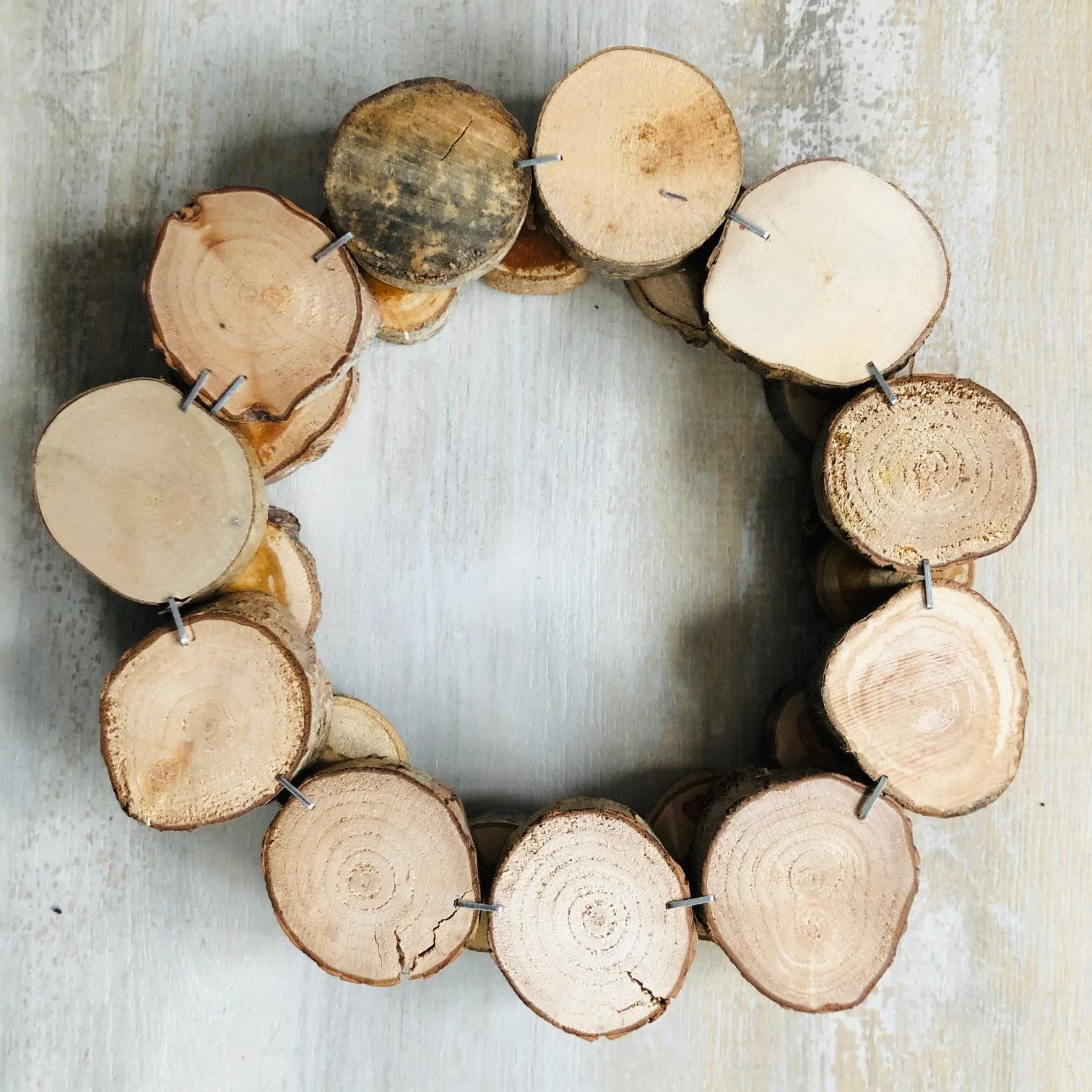 There is something wonderful and versatile about wood slice wreaths. When you make your own DIY wood log wreath you can theme the design to your home.