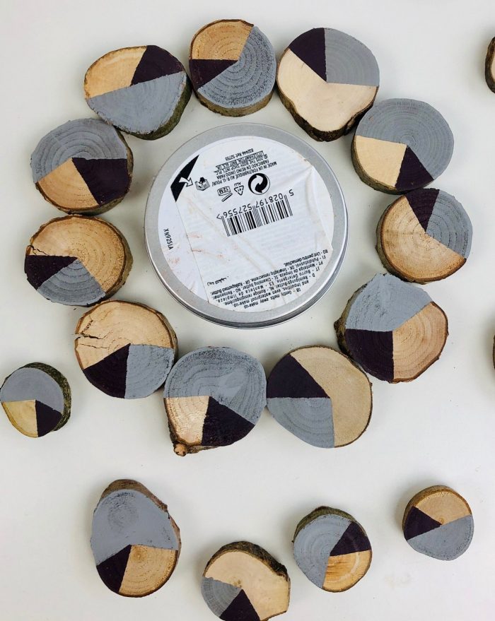 1. Play with your wood slices - creating two laters, one larger as the base, with a second smaller layer so that the log slices overlap each other